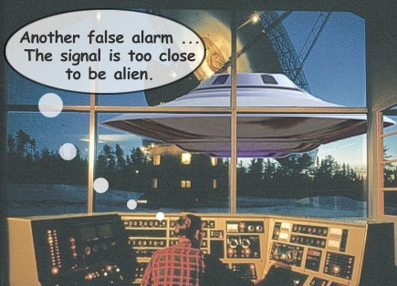 These time and distance relationships also mean that if radio telescopes are our most advanced technology, the likelihood of detecting civilizations less advanced than ours is very small. By the time we receive a ten thousand year old radio transmission, it's conceivable that the civilization that sent it could have created advanced exotic transportation technology that would allow them to physically travel here. If such a thing were to happen, and the aliens do not want us eavesdropping on them, there is no reason to believe that our equipment would be able to detect them. Radio may be as primitive to their receivers as smoke signals are to digital televisions. Simply because they are not on our wavelength does not mean that aliens do not exist, or that they are not already here. A UFO could be hovering right next to one of our radio telescopes and SETI scientists wouldn't know it was there unless they actually looked out of their control room window.